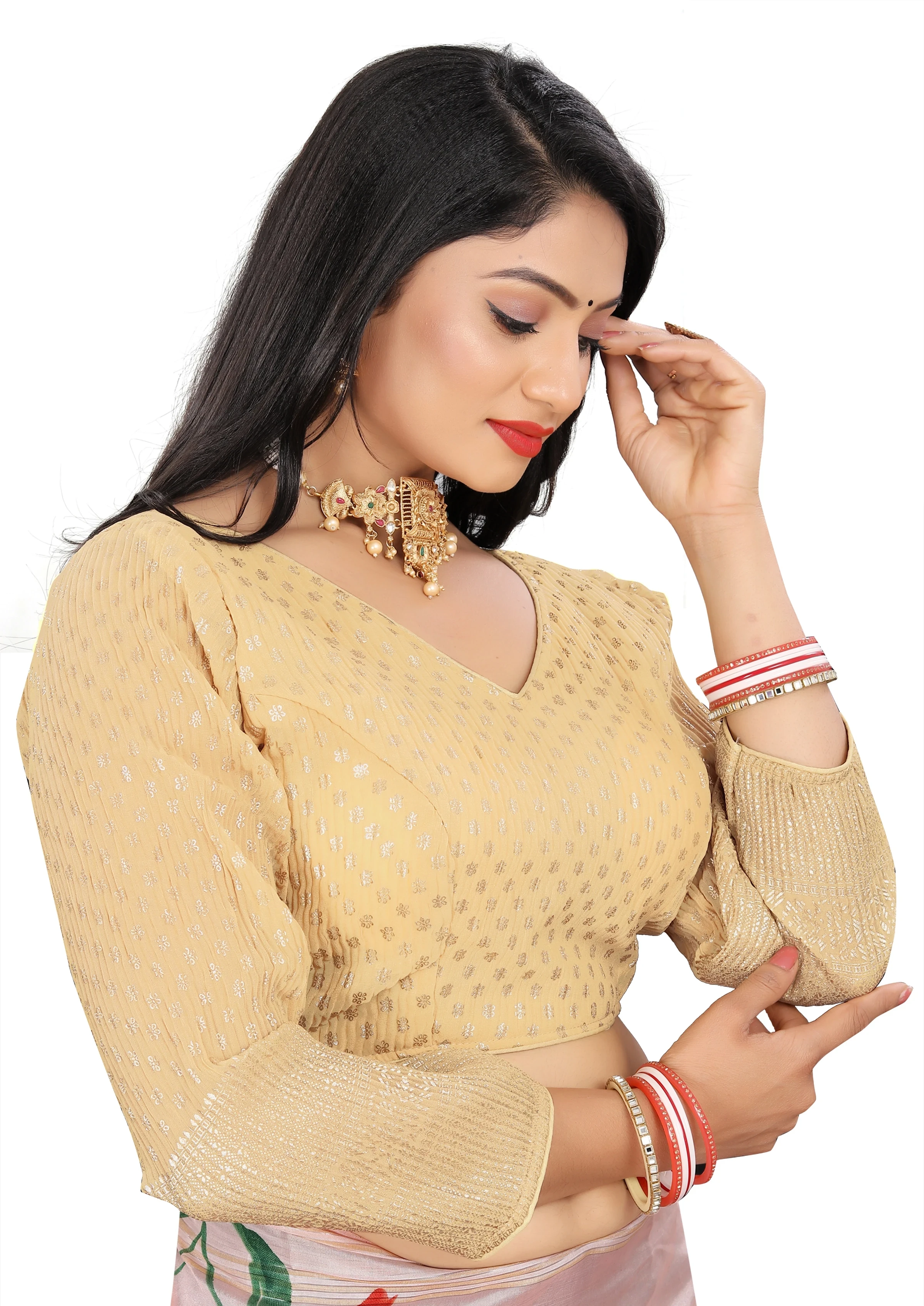 Reeta Fashion Golden Heavy Georgette Full Sleeve Readymade Blouse