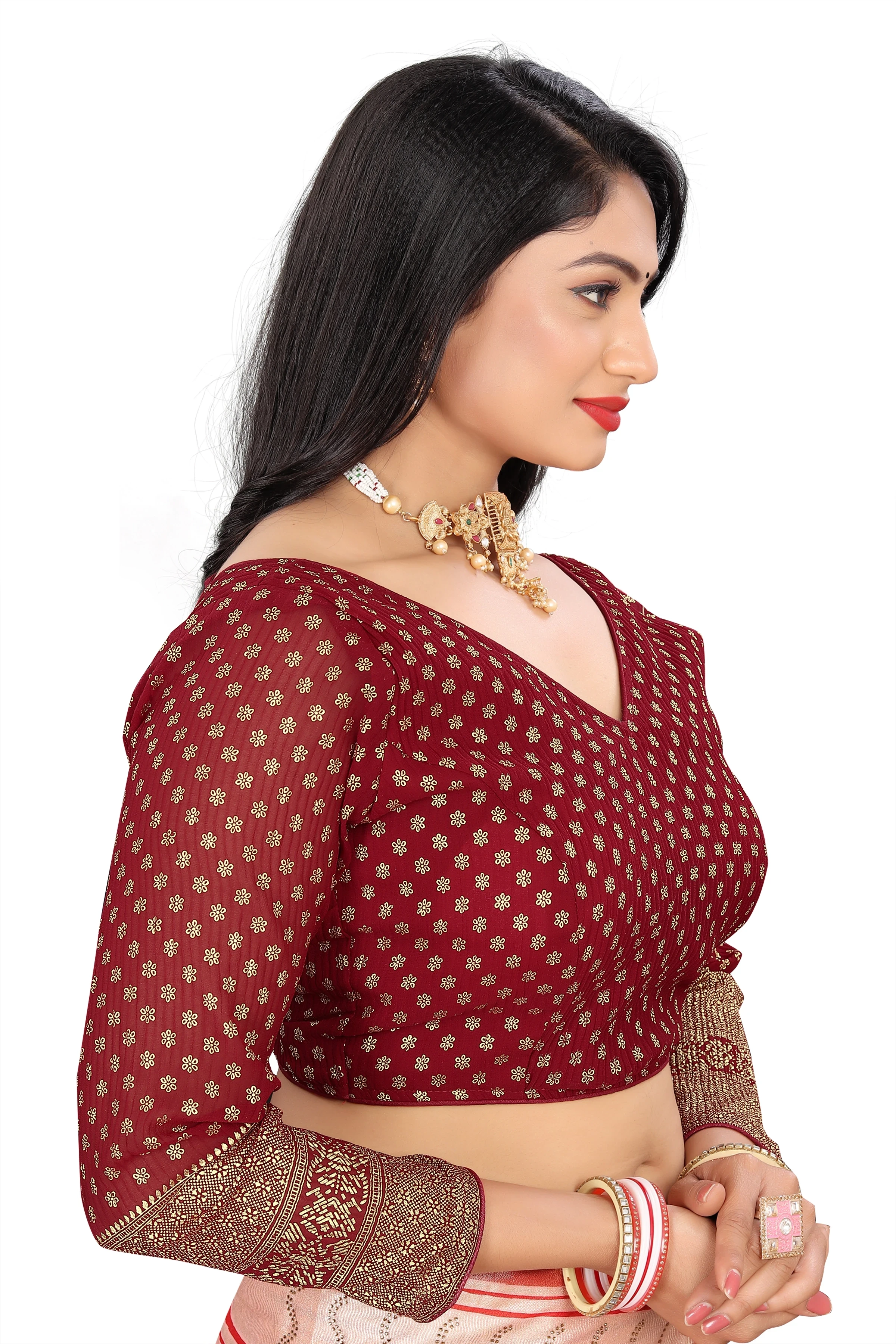 Reeta Fashion Maroon Heavy Georgette Full Sleeve Readymade Blouse