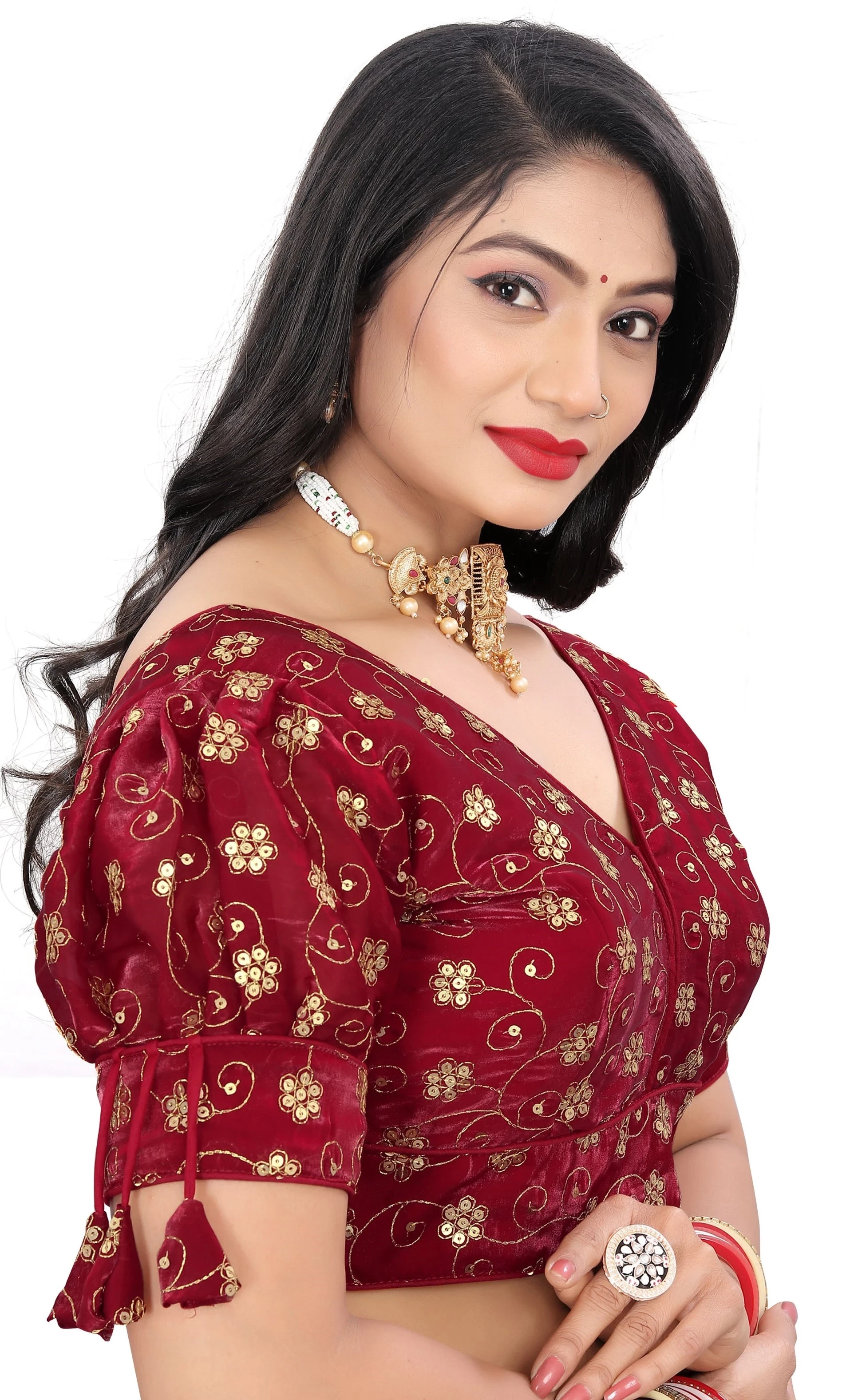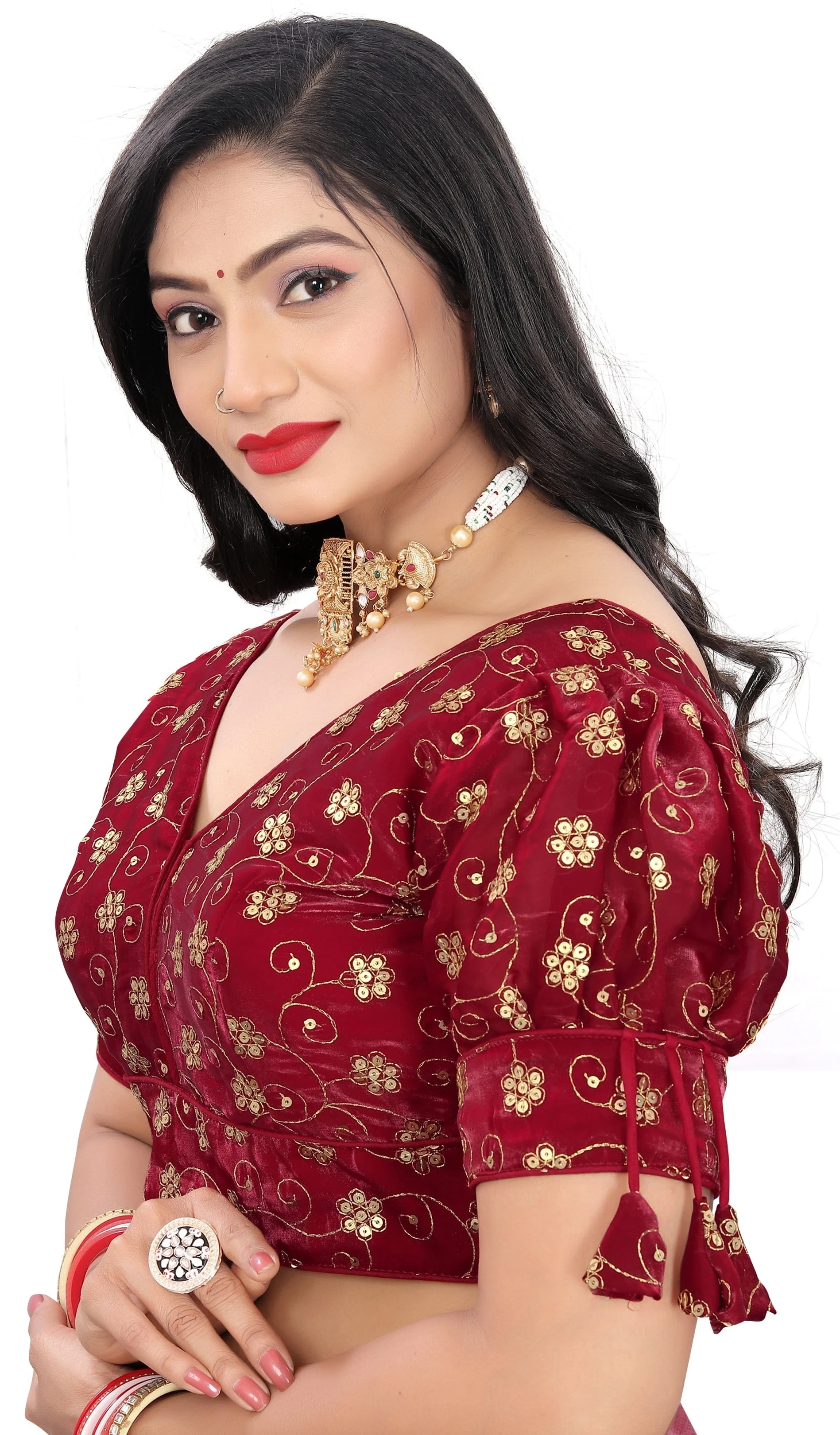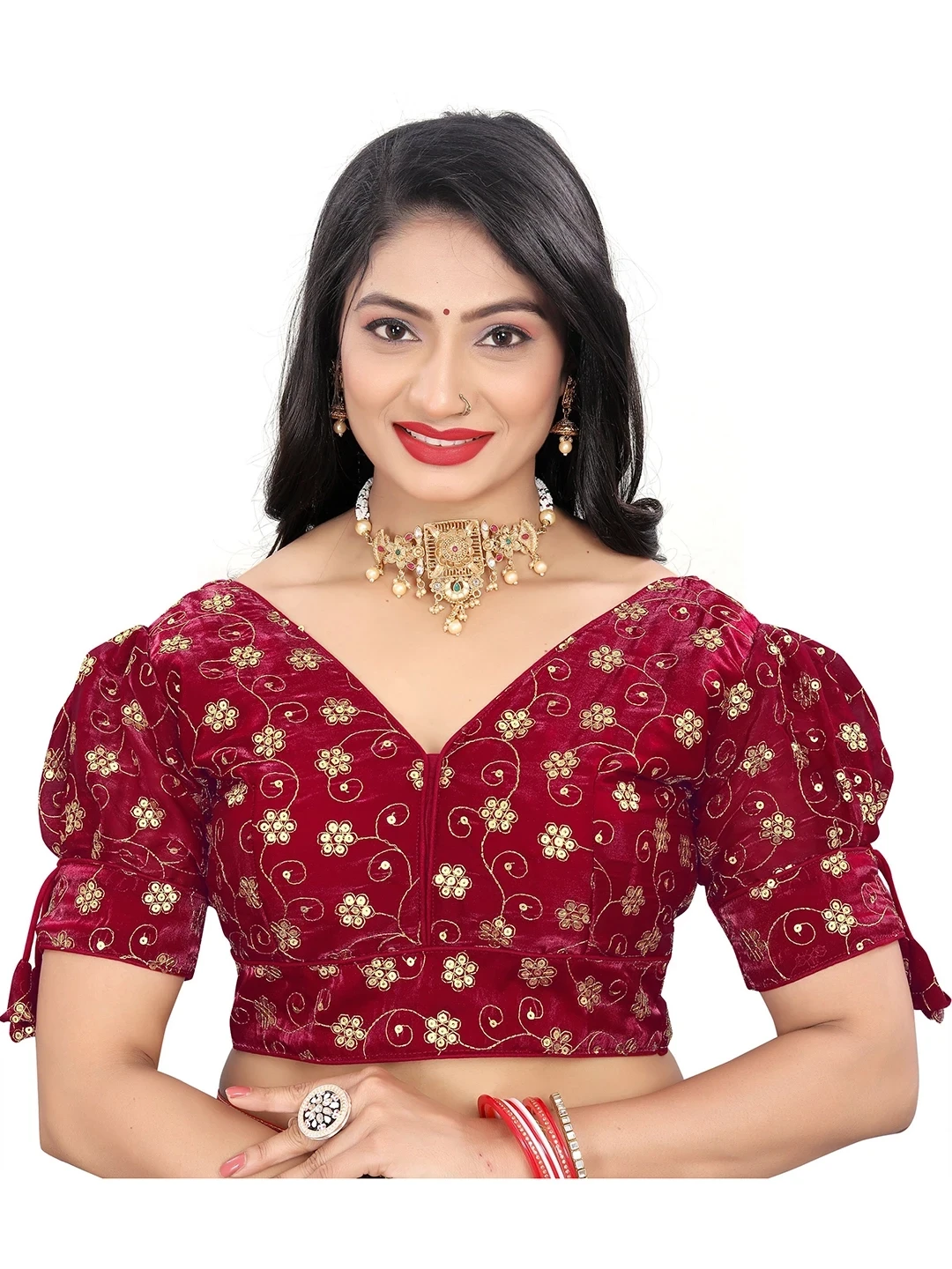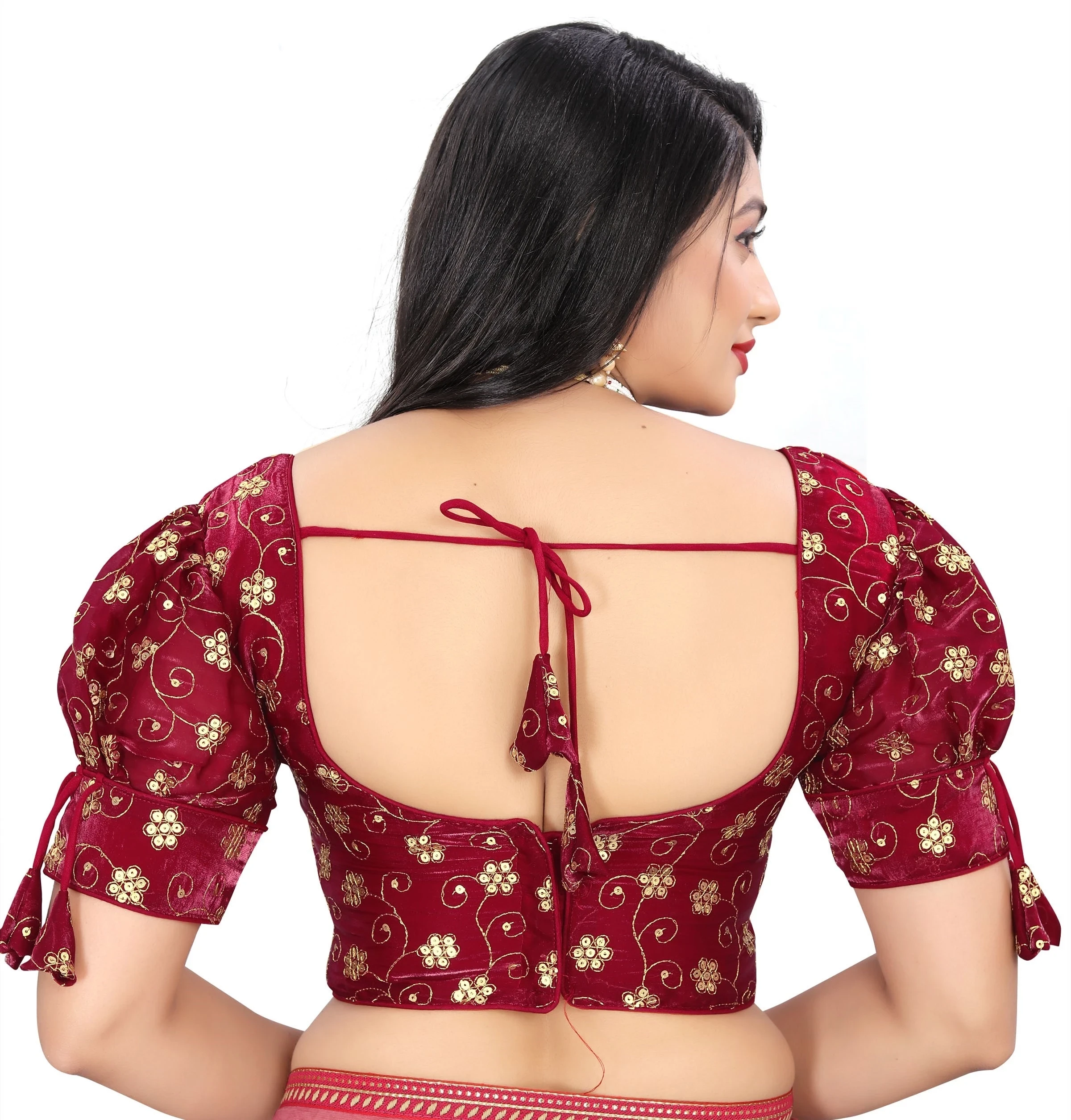 Reeta Fashion Maroon Heavy Zimichoo Fancy Balloon Sleeves With 3 Julla Readymade Blouse