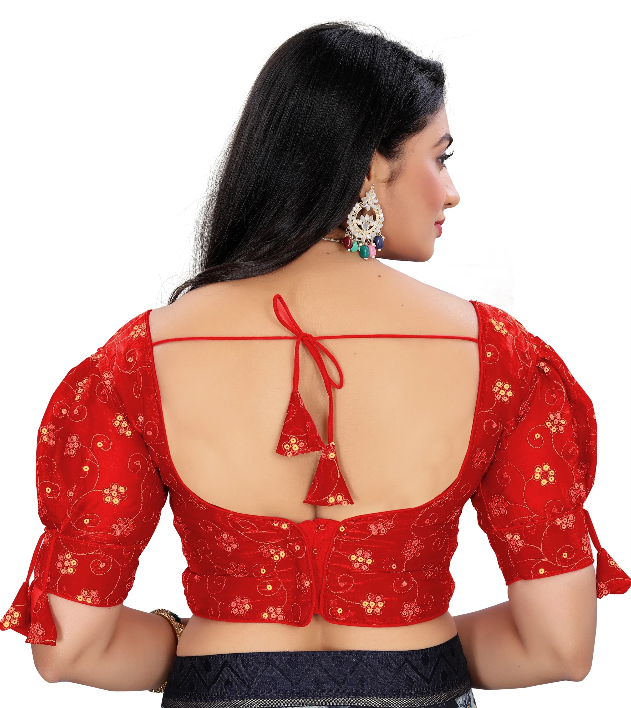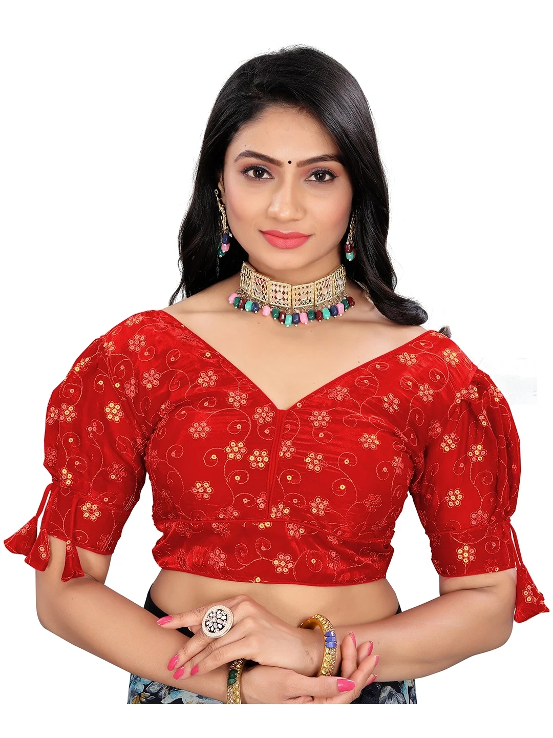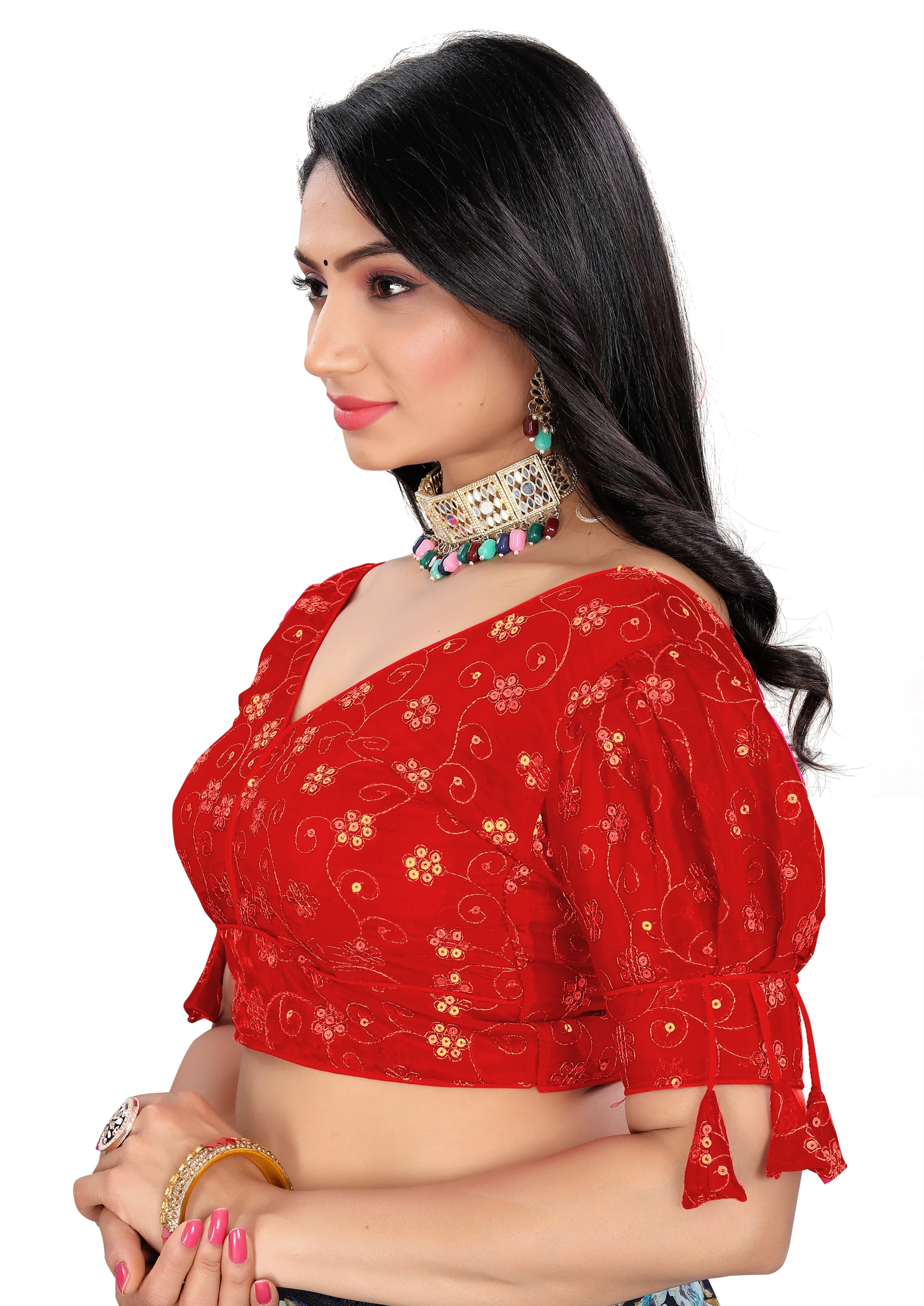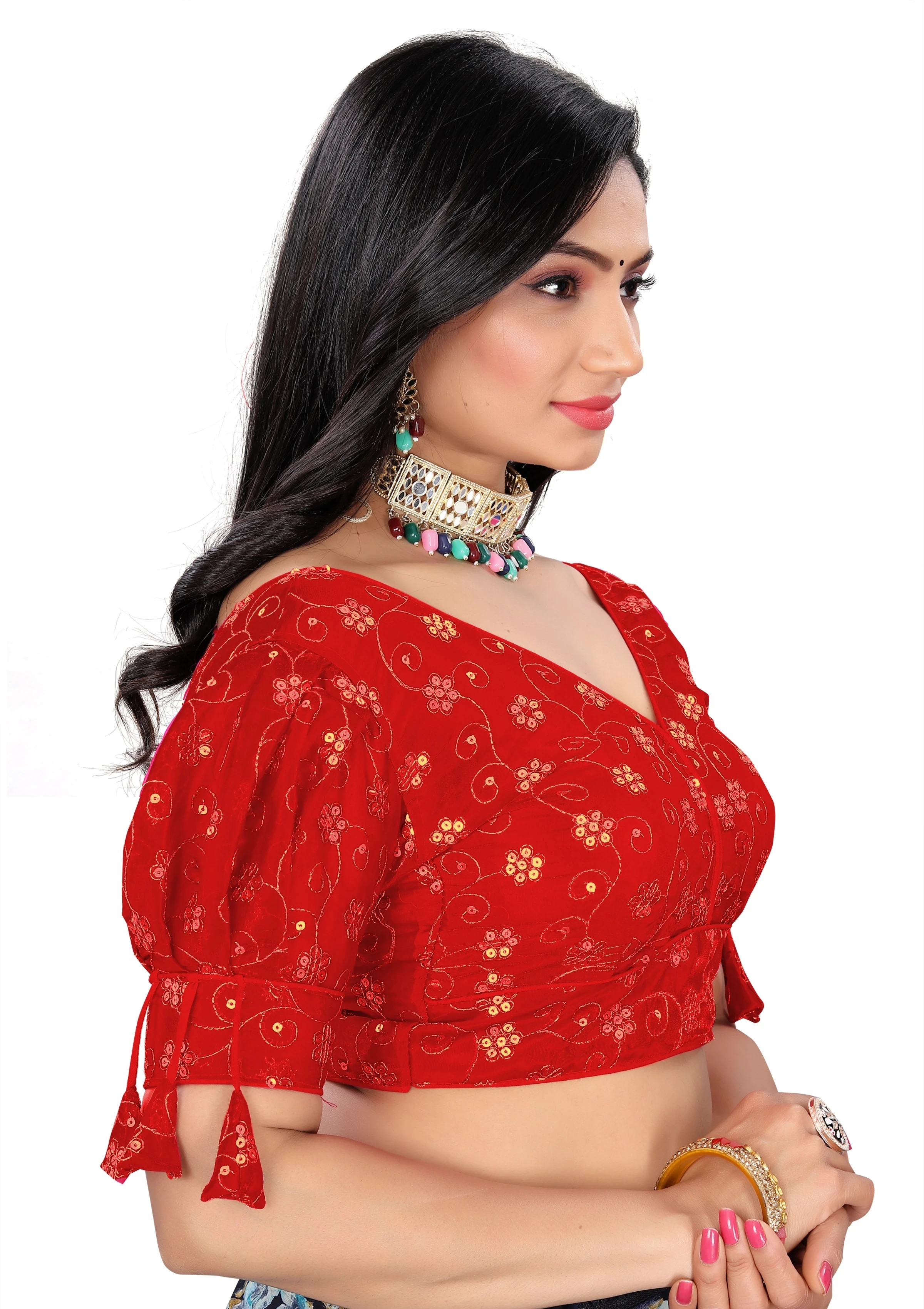 Reeta Fashion Red Heavy Zimichoo Fancy Balloon Sleeves With 3 Julla Readymade Blouse